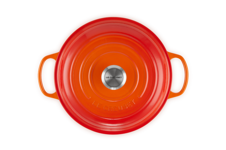 Gemaakt in onze oorspronkelijke Franse gieterij, behoren onze gietijzeren stukken tot culinaire legendes. Deze lage braadpan is daarop geen uitzondering. Het grote, platte formaat en de lage zijkanten maken hem perfect voor het bruinen van vlees en groenten, het sudderen van stoofschotels, roerbakken en bakken. Het bevordert karamellisatie voor extra smaakvolle hapjes.