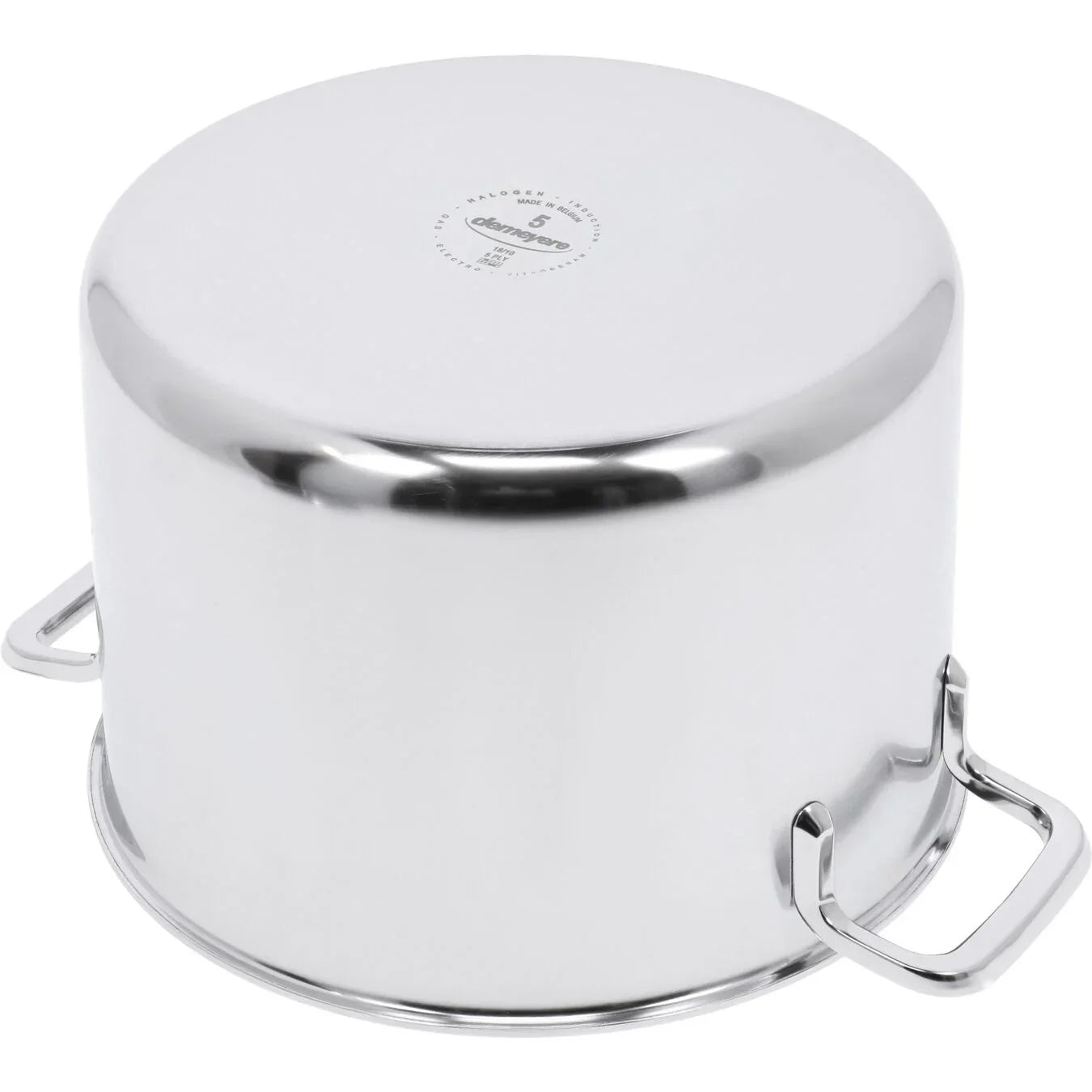 De Demeyere Intense 5 Soeppan is voorzien van een dubbelwandig deksel, wat energiezuinig koken bevordert door warmte en vocht in de pan te houden. De speciale gietrand voorkomt knoeien tijdens het schenken, terwijl de gegoten, gelaste grepen uit roestvrij staal zorgen voor extra stevigheid en hygiëne. Deze soeppan is verkrijgbaar in twee maten: de 20 cm versie met een inhoud van 4 liter en de 24 cm versie met een inhoud van 8 liter, perfect voor elk gerecht en elke gelegenheid.
