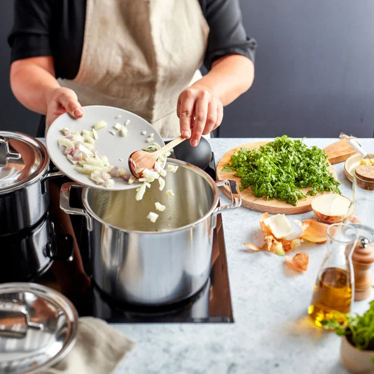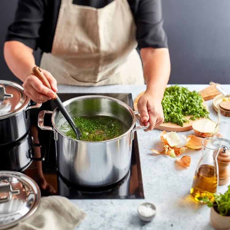 De Demeyere Intense 5 Soeppan is vervaardigd uit een 5-lagenmateriaal dat tot aan de rand doorloopt. Dit zorgt voor een uitstekende warmteverdeling, waardoor je soepen gelijkmatig worden verwarmd en perfect garen. Of je nu een stevige erwtensoep of een delicate bisque maakt, met deze soeppan ben je verzekerd van een optimaal resultaat.