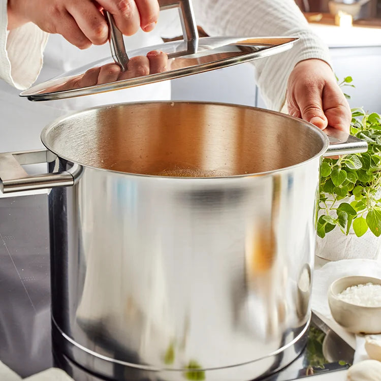 Met 30 jaar garantie bij huishoudelijk gebruik is deze soeppan een investering die generaties lang meegaat. Het tijdloze en minimalistische design van de John Pawson collectie zorgt ervoor dat de pan niet alleen praktisch, maar ook een blikvanger in je keuken is. Of je nu een grote pan soep wilt maken, bouillon wilt trekken of stoofgerechten wilt bereiden, deze soeppan combineert duurzaamheid, efficiëntie en elegantie. De Demeyere John Pawson 7 soeppan met dubbelwandig deksel biedt je de zekerheid van topkwaliteit en maakt koken nog aangenamer.