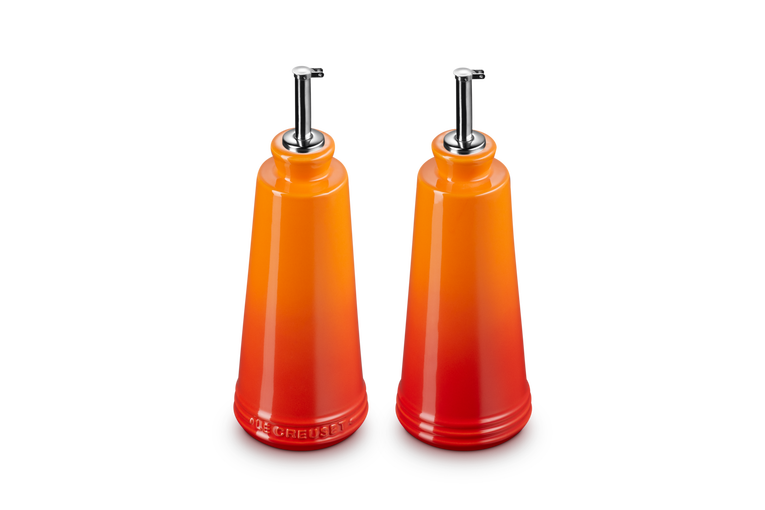 Of je nu een salade aanmaakt of een scheutje olie aan een hete pan toevoegt, deze eigentijdse aardewerkset is ontworpen voor dagelijks gebruik. De set bevat één flesje met Le Creuset-logo en één zonder voor eenvoudige herkenning, samen met roestvrijstalen tuiten voor nauwkeurig schenken.